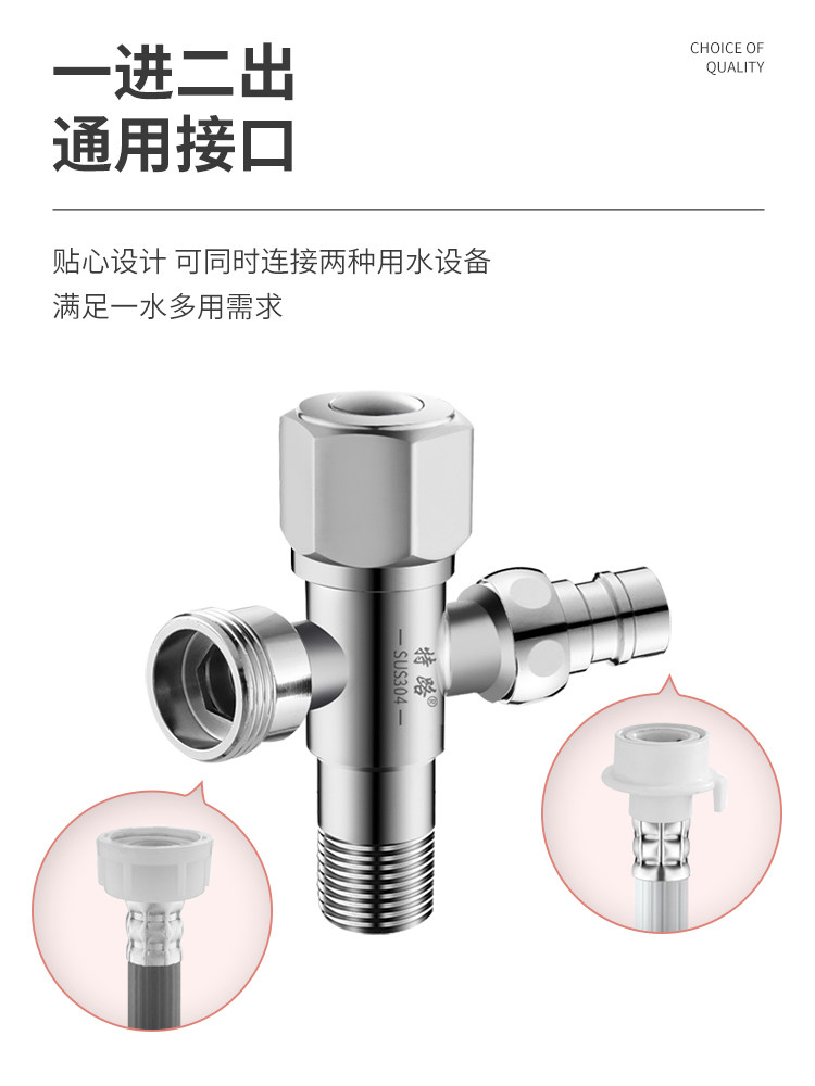 One-in-two out-of-wire angle valve for 46-two-two-way dishwashing machine Double-head three-way toilet mop pool splitter