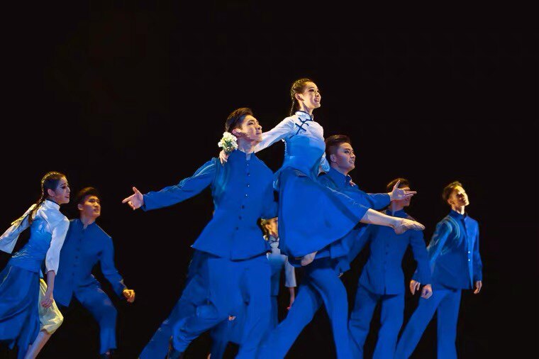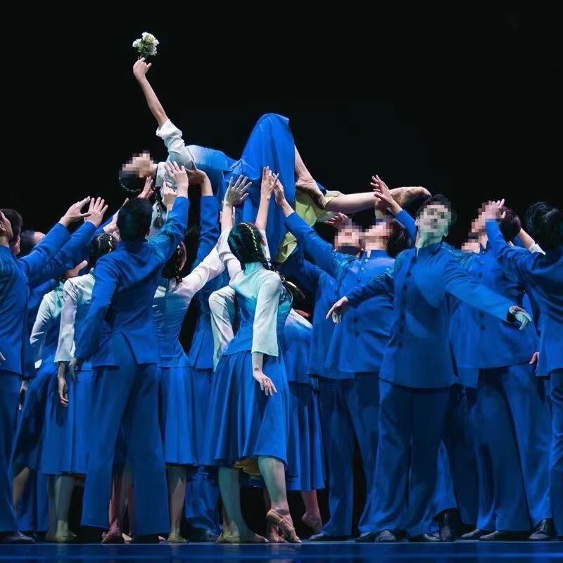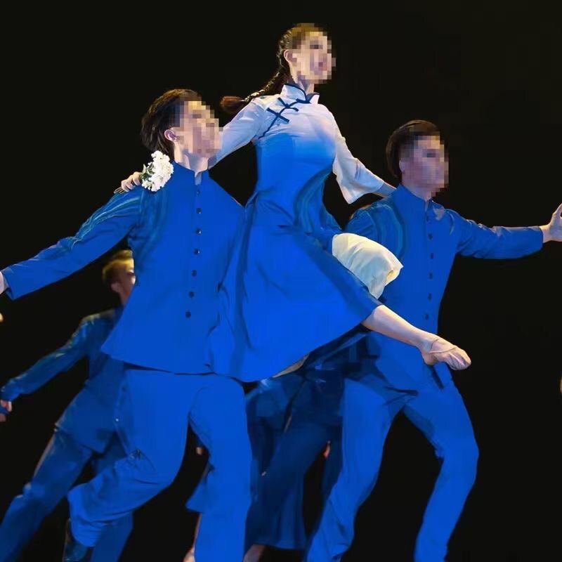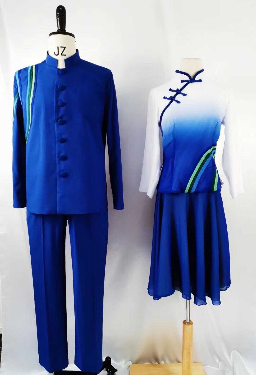 Original clothing Jasmine Fangfang group dance performance Costume Blue Dance Dress Zhongshan dress support set up for an examination and art performance