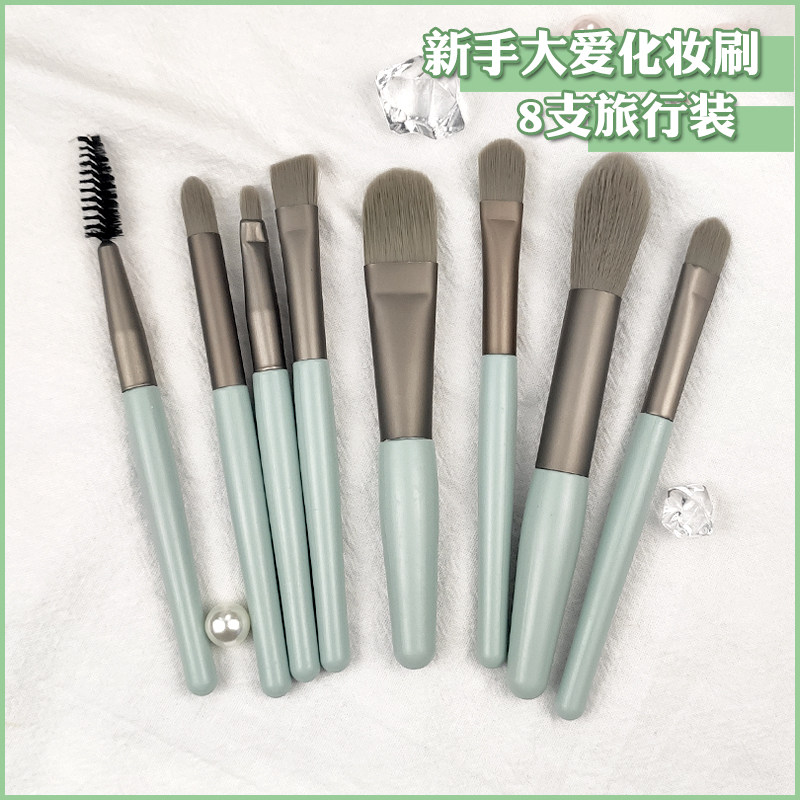 8 lake green--8 deep brown makeup brushes 8 lake green--deep brush bag 12 pink brushes brush bucket 12 black brushes brush bucket 12 powder leather bag 12 black leather bag 12