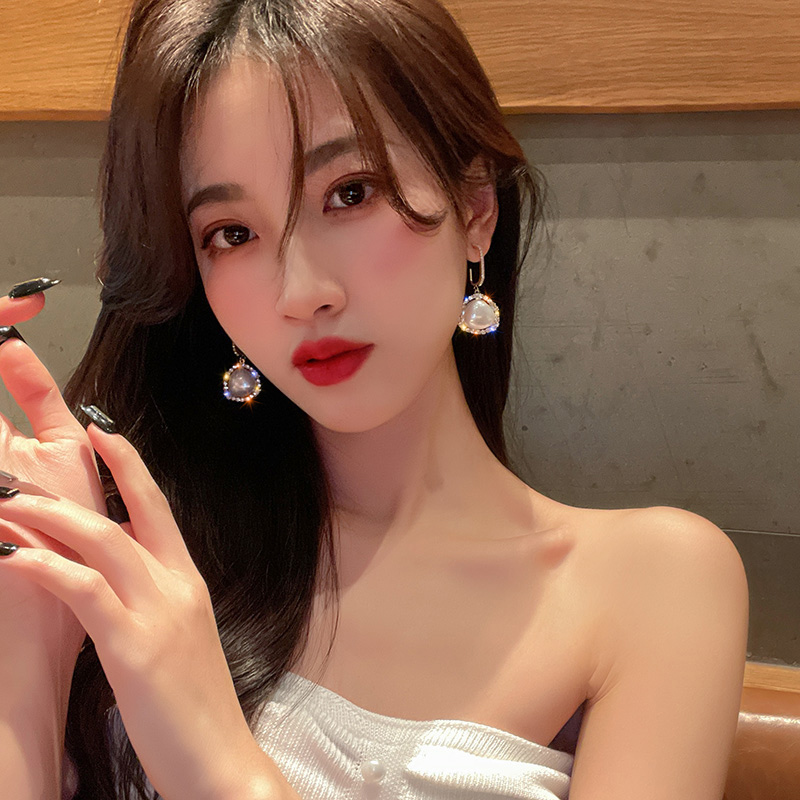 Light and luxurious ~ Bring your own flashy aura ~ fashion shimmery pearl earrings female net red earrings Temperament Tide