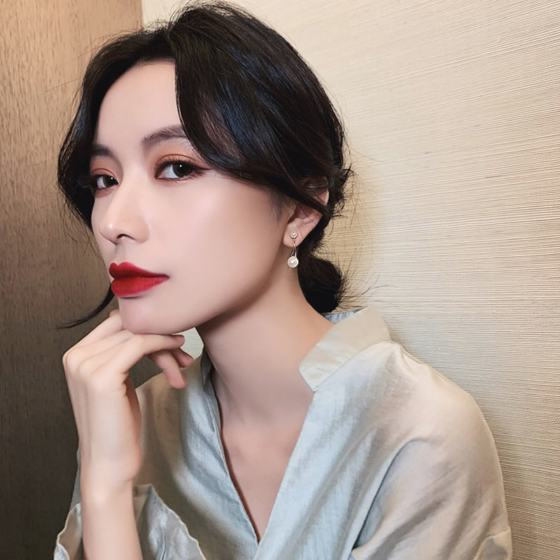 Fashion Devil~light luxury fresh wind~ Pearl earrings Red ear needle 925 pure silver temperament momentum