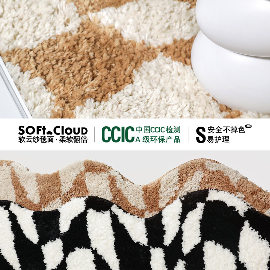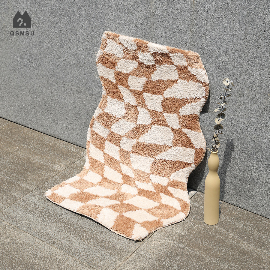 (Qingshan Meiju) Original design medieval checkerboard carpet special-shaped bathroom cat feeling into the door foot mat