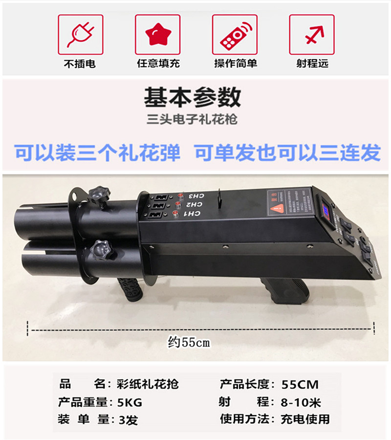 Charging LED three-head electronic fireworks gun bar atmosphere props Gatling salute gun safety colorful fireworks bomb
