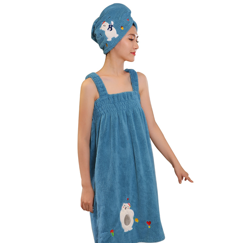 Bath skirt dry hair hat two-piece set can be worn wrap-up bath towel female summer absorbent home non-cotton bathrobe shower cap set