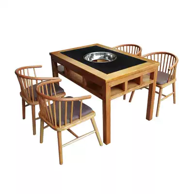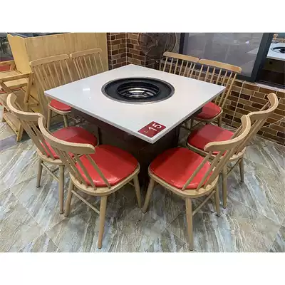 Fire stone solid wood Marble casserole Smoke-free purification Barbecue hot pot table and chair Induction cooker all-in-one commercial card holder