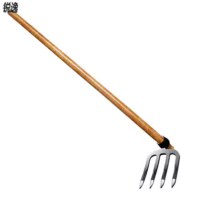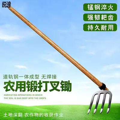 Thickened iron rake Steel rake rake Garden vegetable turning soil ripping rake Agricultural tools three or four tooth rake wasteland turning hoe