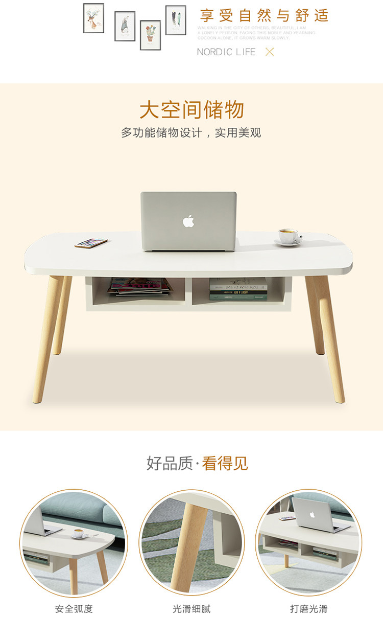 Tea table Nordic minimalist modern living room Small family type storage small tea table solid wood simple rectangular creative tea table