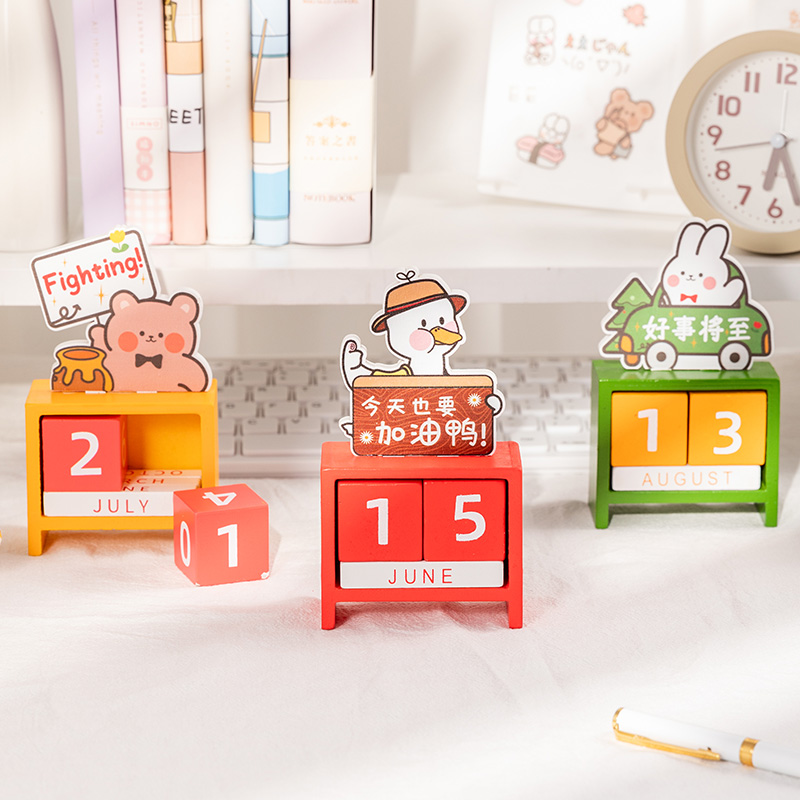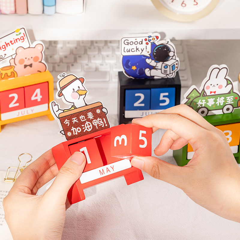 Creative Cute Desktop Woody Calendar Pendulum with Inspirational Wins and Perpetual Calendar Countdown Reminder of Teenage Art Graduation Season Small Gift Desk Small Table Calendar Year
