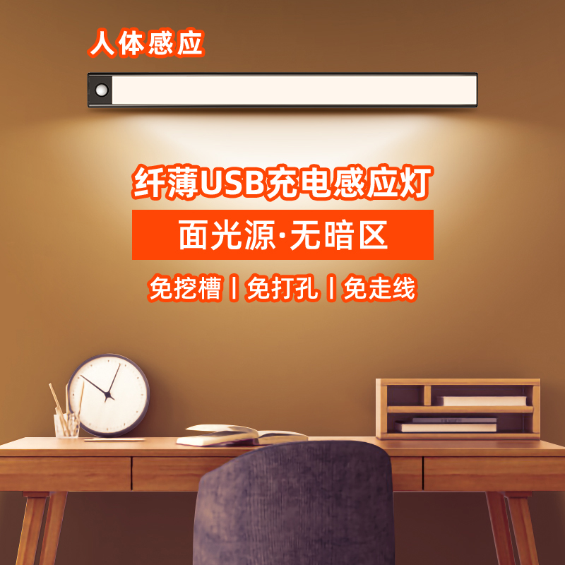 Human body induction light strip light with rechargeable led wireless kitchen shoe cabinet bottom wardrobe light bar cabinet overall cabinet light