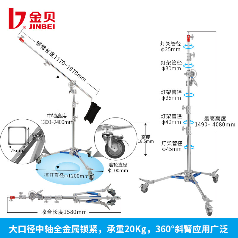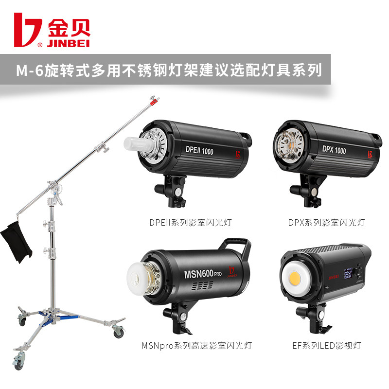 Jinbei M-6 rotary multi-purpose stainless steel light stand video light film and television light always-on light flash cross arm light stand ceiling light stand studio photo studio photographic equipment inclined arm bracket tripod