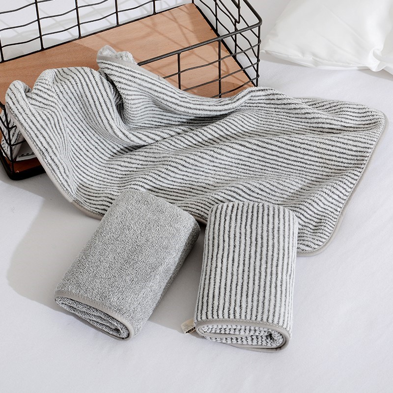 Sky blue bath towels towels in three clothes -2 full of stars 1 vertical striped towels 3 clothes -2 grey 1 beige towel three clothes -2 grey 1 blue towels three pieces -2 vertical stripes