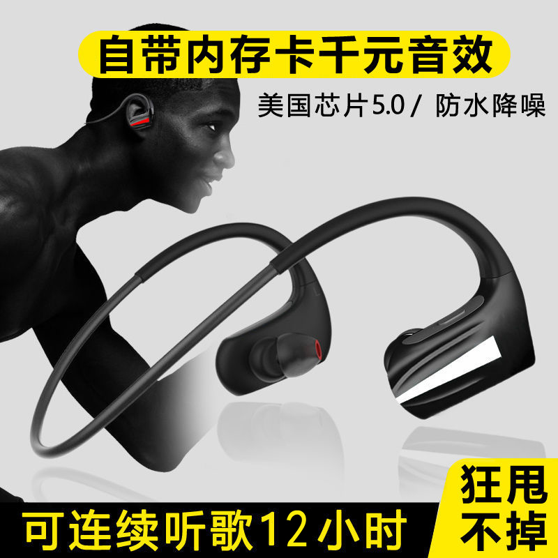 Luden Sport Bluetooth headphone Running fitness Bring your own 16G memory MP3 one-piece ear-hanging waterproof anti-perspiration anti-perspiration without wireless super-long standby plug-in-card wireless Bluetooth in-ear style