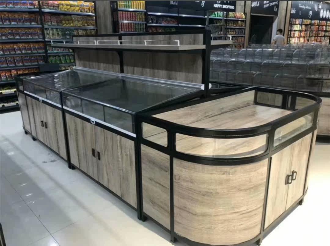 Steel wood mid-island section 120 * 80 * 140cm aspect high steel wood end rack section 160 * 80 * 85cm aspect height high composition series 2 groups of islets 2 sets end frame combined series 4 groups of islets