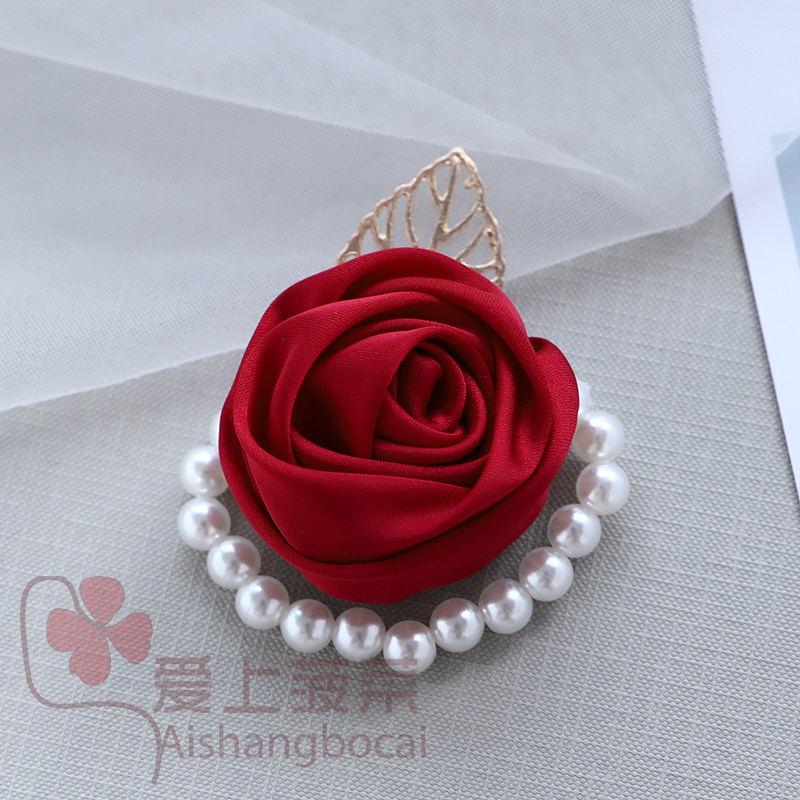 Chest flower Chinese profile Mermaid with small clear bride wrist flower bridesmaids and sisters handflowers pearl bracelet for children red-Taobao