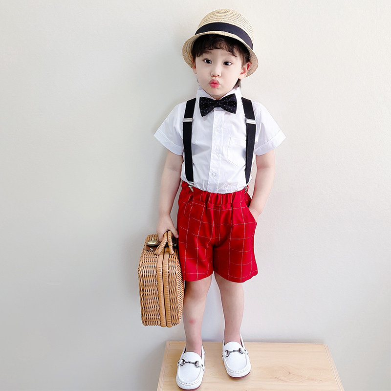 Baby's first birthday suit dress summer boy British style gentleman suit child wedding flower girl red tide