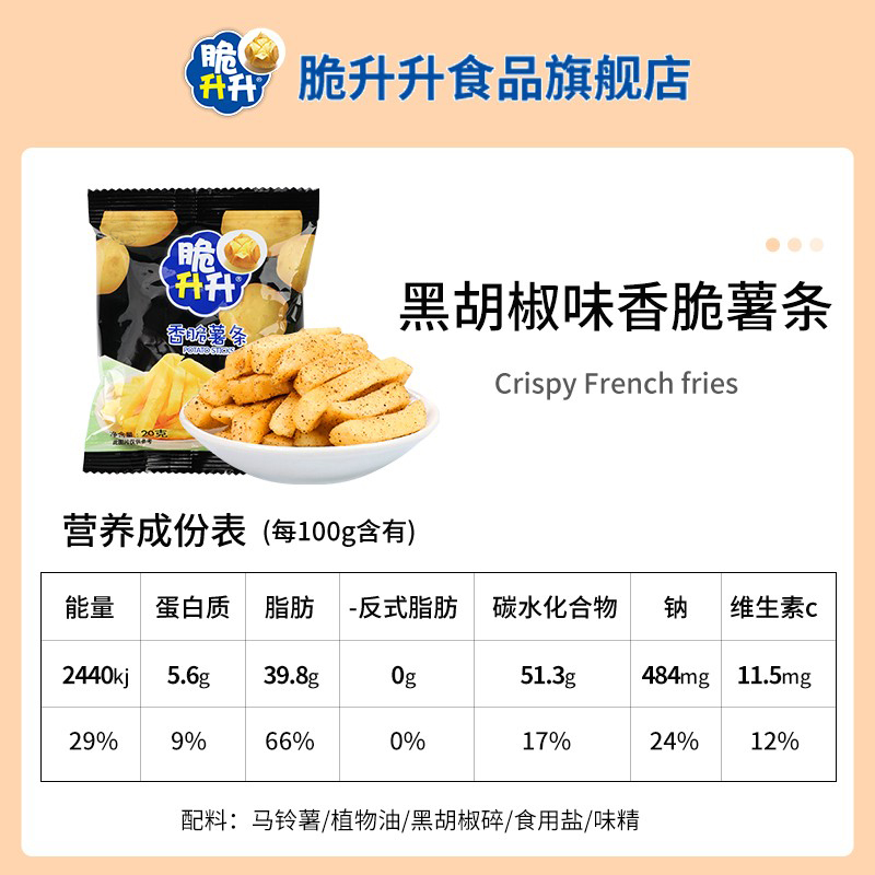 Crispy rose crispy fries 20g * 65 bags fresh cut potato chips black pepper flavor casual snacks non-fried crispy raw