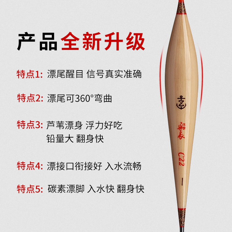 Captain floating reed floating extended series red and green tail high sensitivity bold eye-catching carp wild fishing night fishing