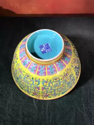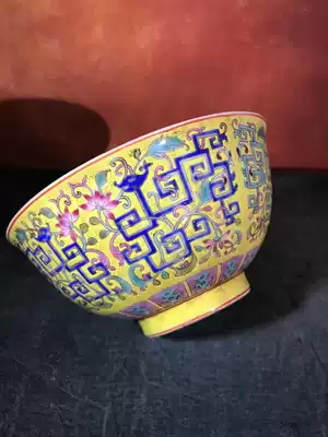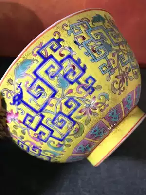 Qing Dynasty exquisite yellow ground pastel flower bowl (rich price discount variety) appreciation ornaments