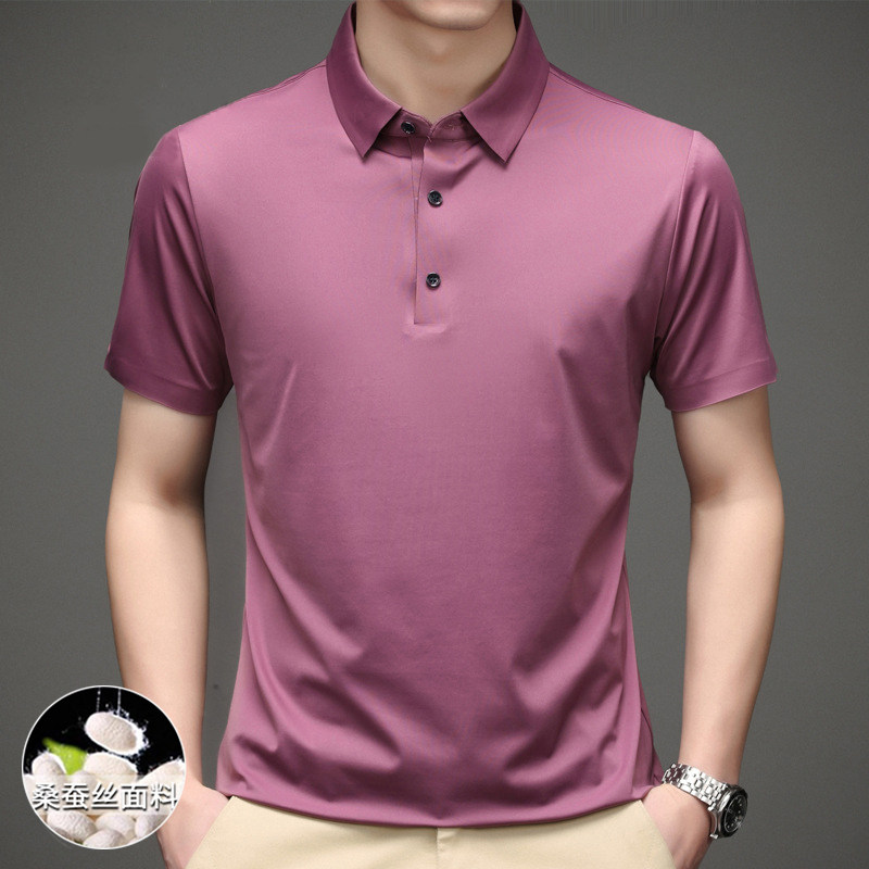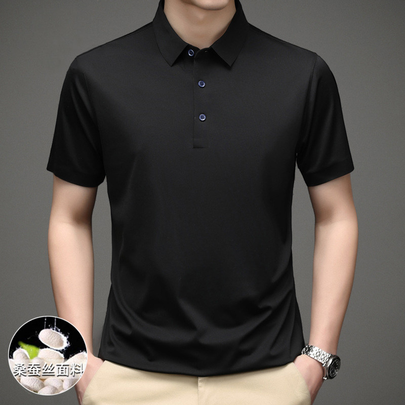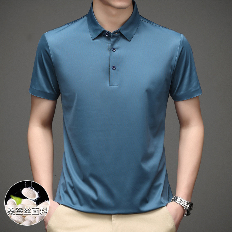 Roemon Old Age mulberry silk T-shirt Male short sleeve Summer thin Genuine Silk Business Flipped Men Polo Shirt Dad
