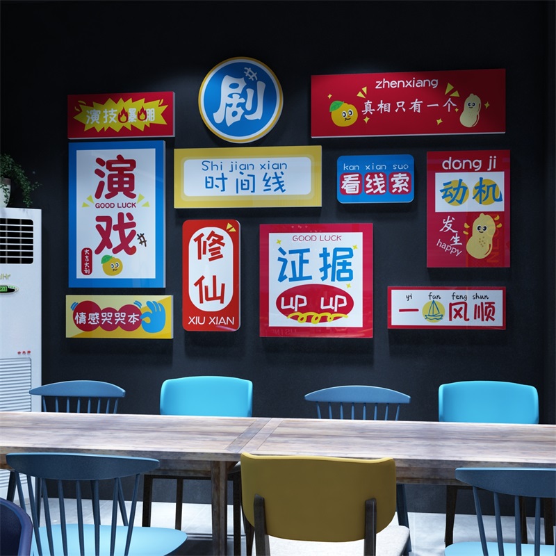 Net red shop punch card layout photo script werewolf kill board game secret room escape wall chess room theme room decoration