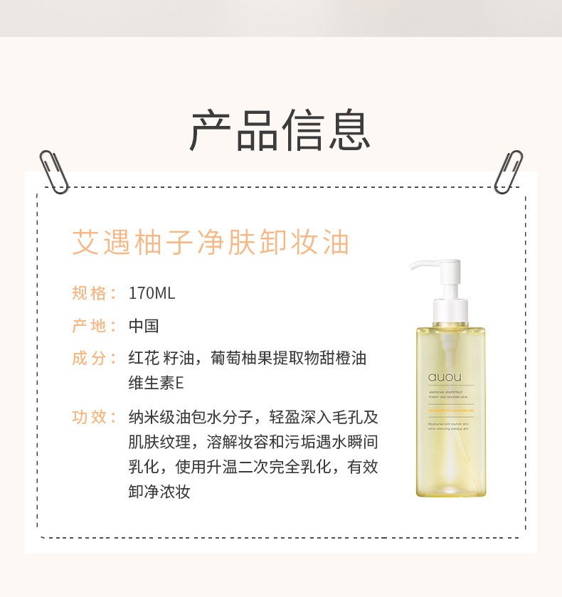 auou Aiyu Aiyu Cleansing Oil 170ml Grapefruit Eyes and Lips Gentle Makeup Remover Sensitive Muscle Unloading Oil