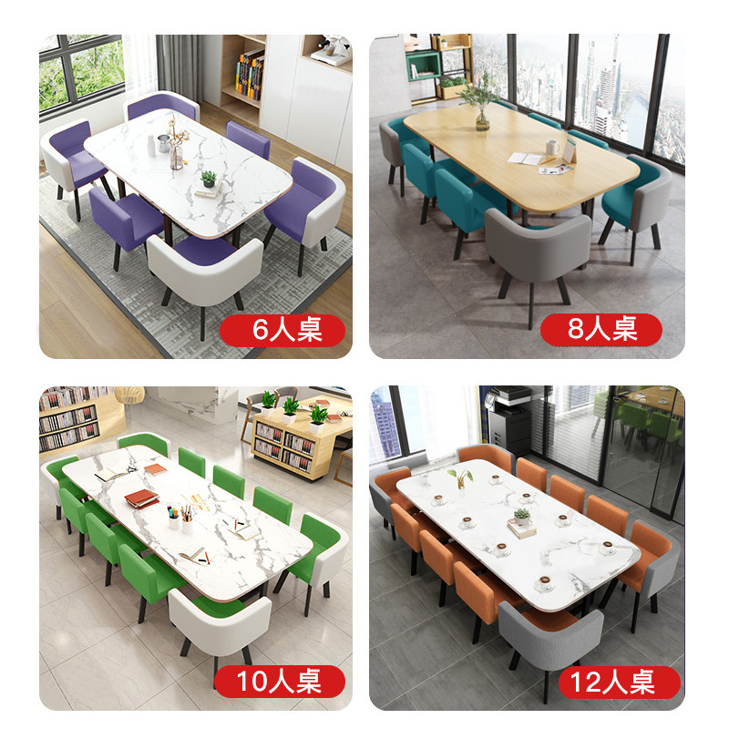 One table eight chairs white spelled yellow (leather) one table eight chairs white parquet blue (leather section) One table eight chairs white parquet green (leather) One table eight chairs grey parquet orange (leather) One table eight chairs