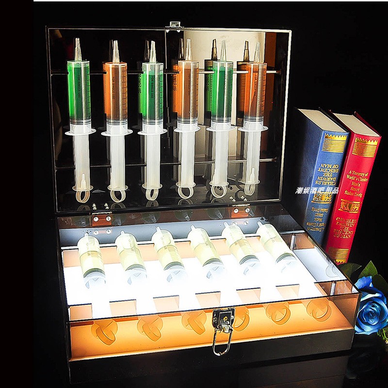 Bar KTV luminous test tube aluminum bottle syringe syringe One cup cocktail Cocktail Rack Interactive Creative Wine Box 24