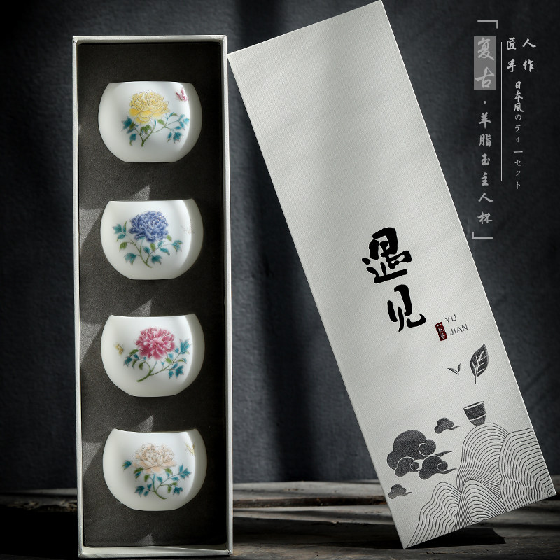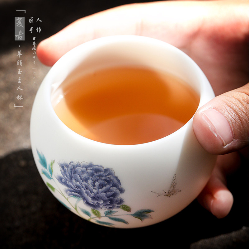 Teacup Day Master's Cup Gongfu Tea Tea Tasting Cup Personal Cup Goat Fat Jade Porcelain Vegetarian Burning Small Tea Bowl High-end Gift Box