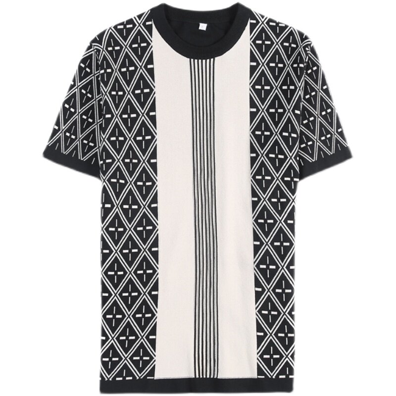 Summer round tie-shaft T-shirt Men short sleeve knitted shirt Lightweight English trend mens