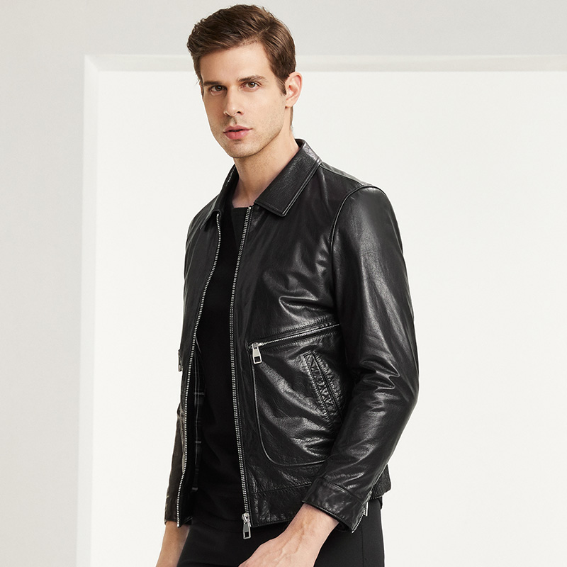 Snow Leopard Haining New Genuine Leather Jacket Men's First Layer Leather Business Casual Motorcycle Leather Jacket Jacket Autumn and Winter