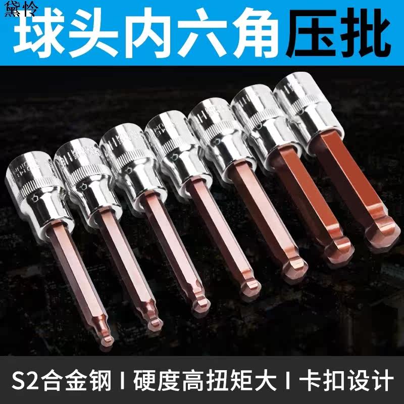 Inner hexagonal screwup pressing-batch sleeve batch head S2 electric opener inner hexagon 12 5mm ball head sleeve head suit