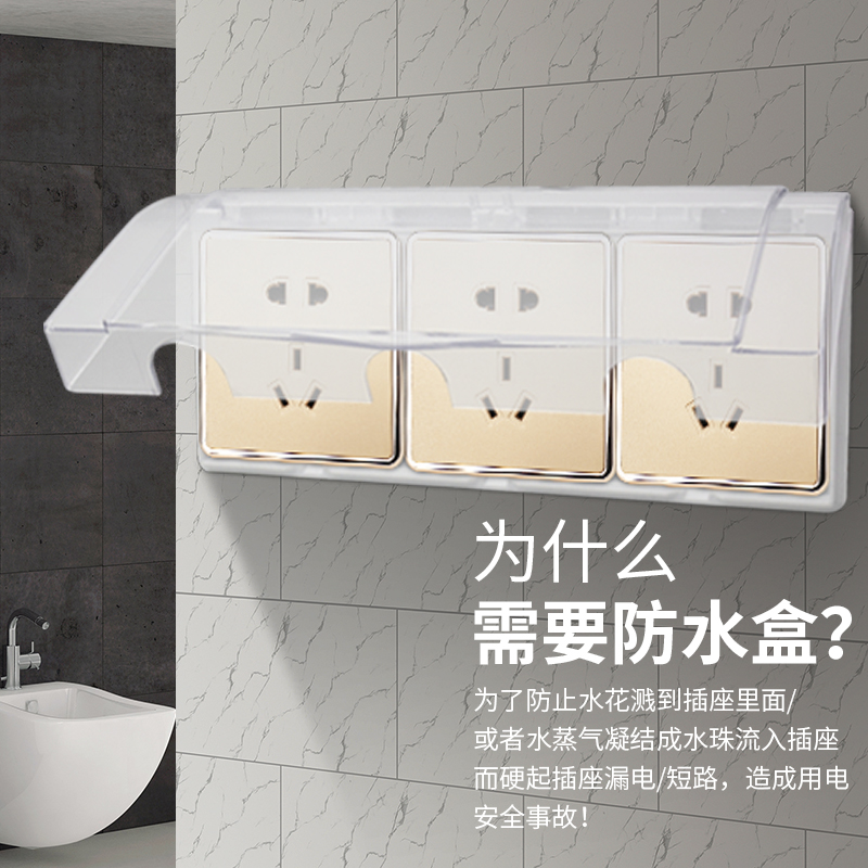 Household three-position socket waterproof box 86 type three-row one-piece power switch splash-proof box paste socket waterproof cover