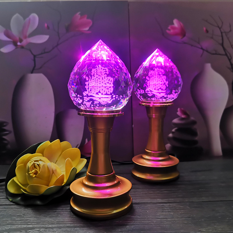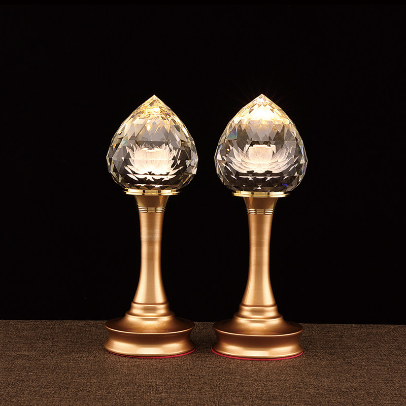 LED crystal lotus lamp Buddha supply lamp long bright lamp lotus lamp charging household Buddha lamp Buddha front supply lamp craft gift decoration pair