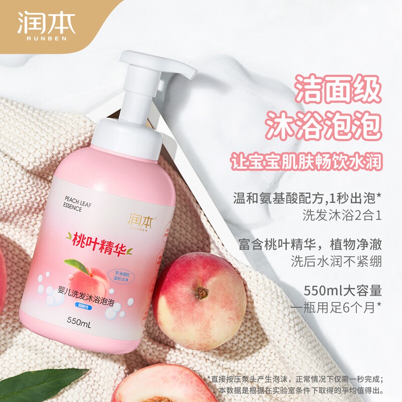 Moisturizing Peach Leaf Essence Baby Bubble Shampoo lotion Bath Lotion two-in-one baby Children's body lotion Lotion Shampoo