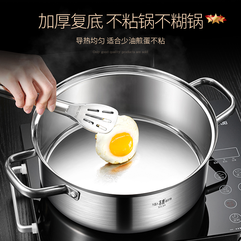 Guido Soup Pan 304 Stainless Steel Pan Thickened Home Induction Cookpot Pan Special Pan Gas Cooker Universal Cooking Pan