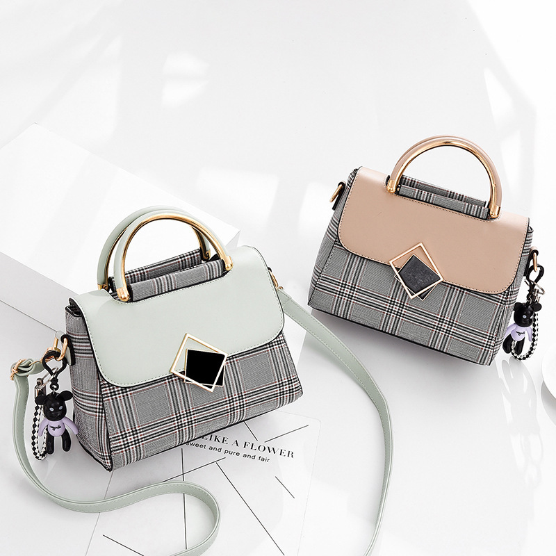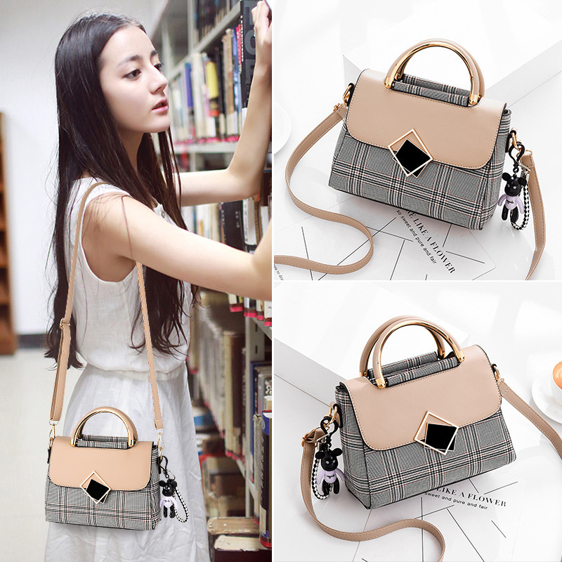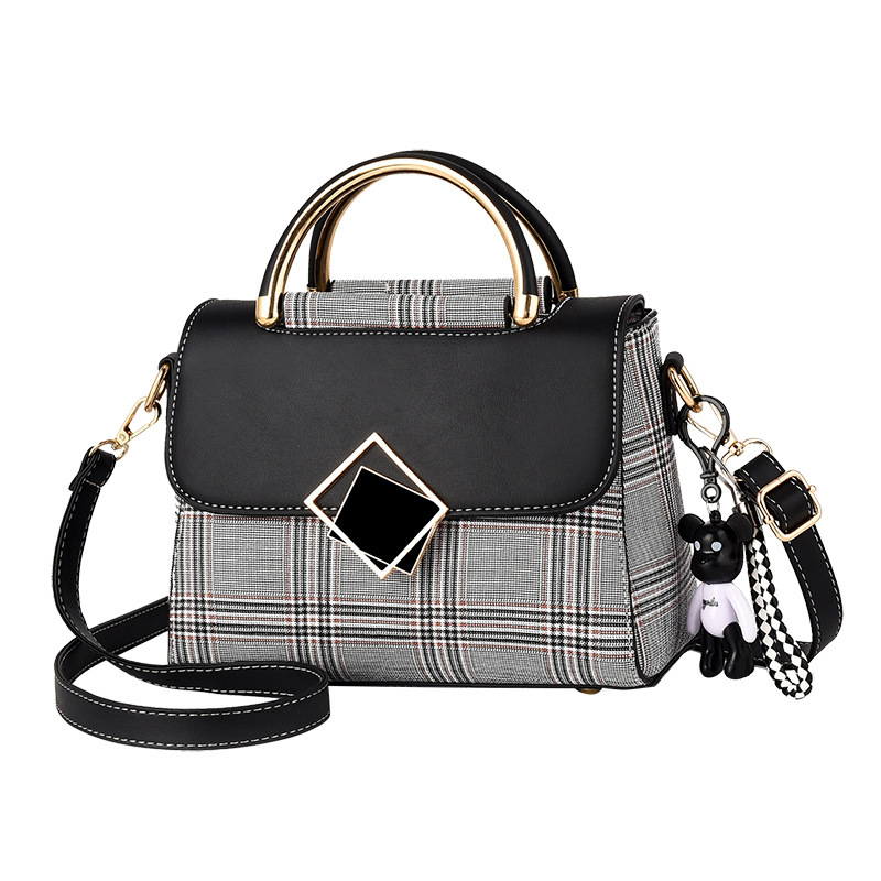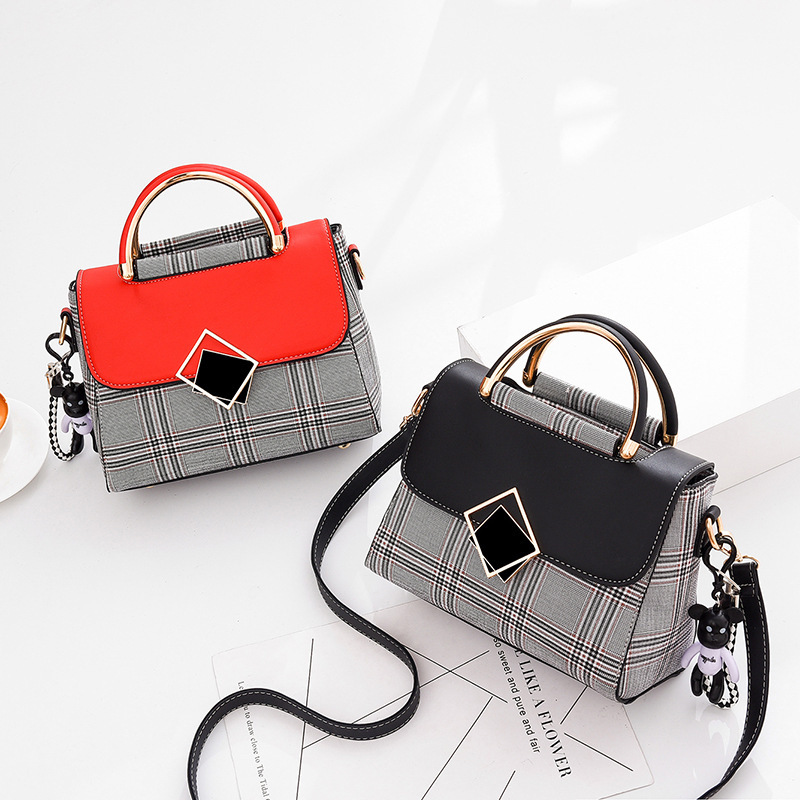 Hong Kong 2022 small packs of women's new fashion grid Red Slanted Satchel Students Brief single shoulder Handheld Pet Bag