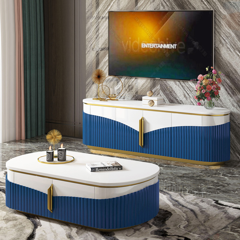 Nordic Light Lavish Oval Modern Marble Tea Table TV Cabinet Mix Small Family minimalist Art Living room furniture