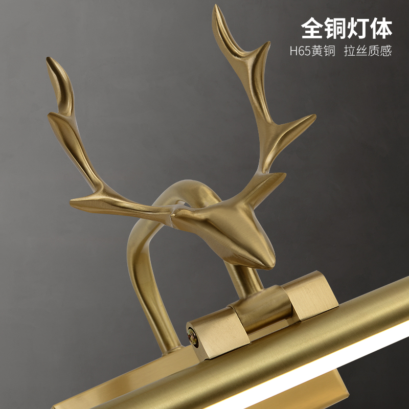 Nordic Deer Antlers All-bronze Mirror Front Light Makeup Room Bathroom Mirror Cabinet Special Moisture Proof waterproof American Makeup Tonic mirror Light