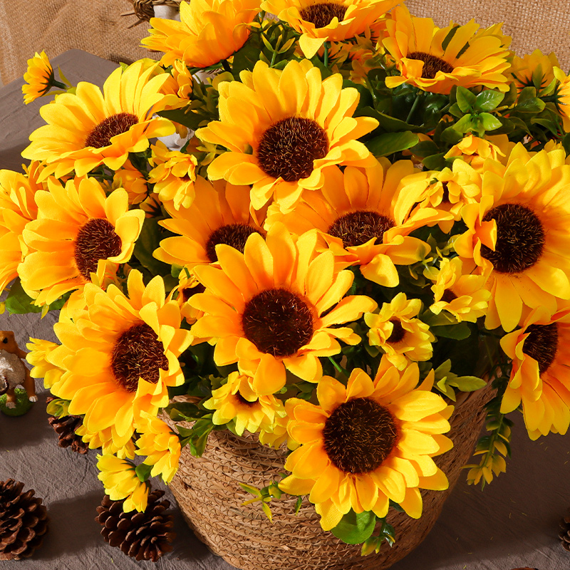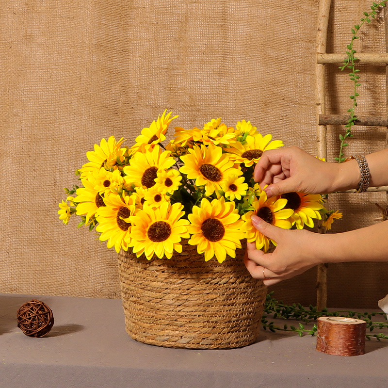 13 Head Sunflower 5 Branches White Side Grass Basket 24 Head Sunflower 7 Branches White Side Grass Basket 7 Heads Sunflower 7 Branches White Side Grass Basket 13 Head Sunflower 5 Branches Pure Color Grass Basket