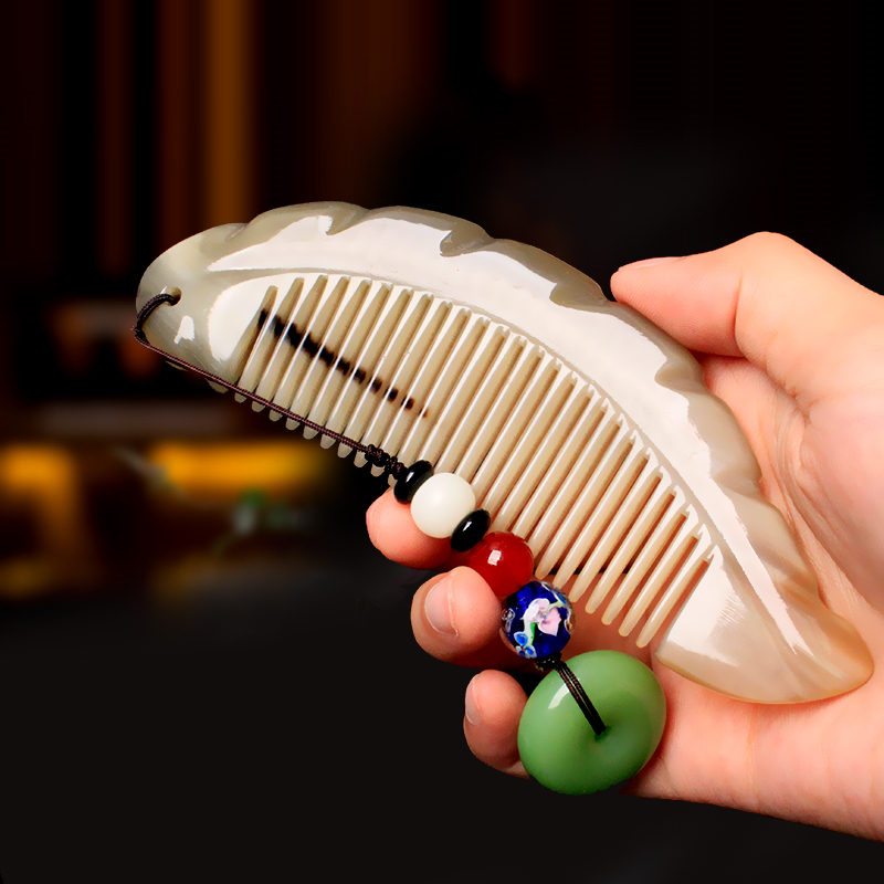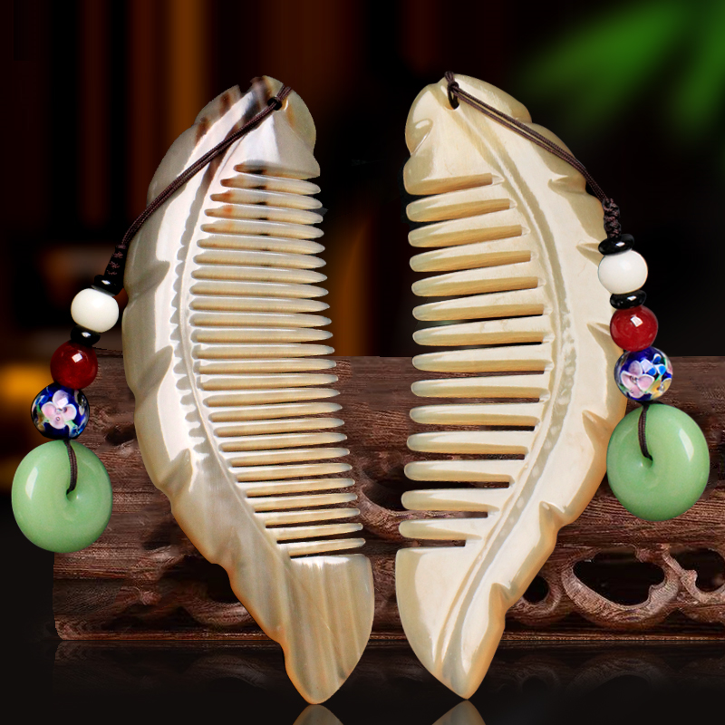 Natural Yak Horn Comb Send Girlfriend Home Lettering Electrostatic Hair Loss Massage White Corner Cute Little Comb