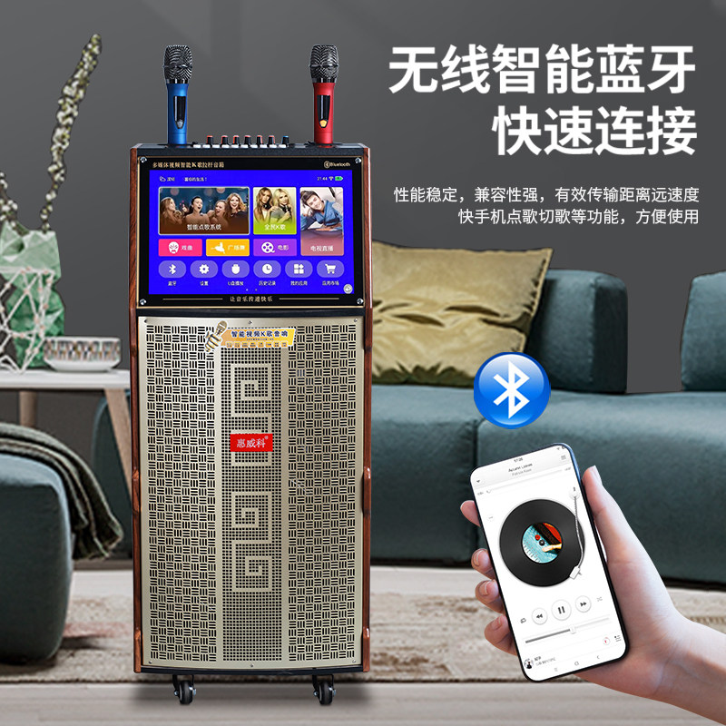 Factory direct sale Swans 24-inch outdoor high-power Bluetooth smart karaoke network three-way trolley speaker double - Taobao