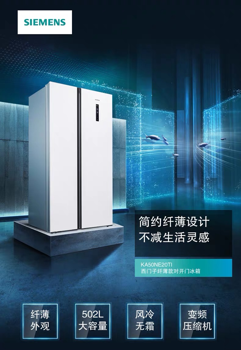 SIEMENS Siemens air-cooled frost-free ultra-thin embedded glass open double door fridge frozen and fresh