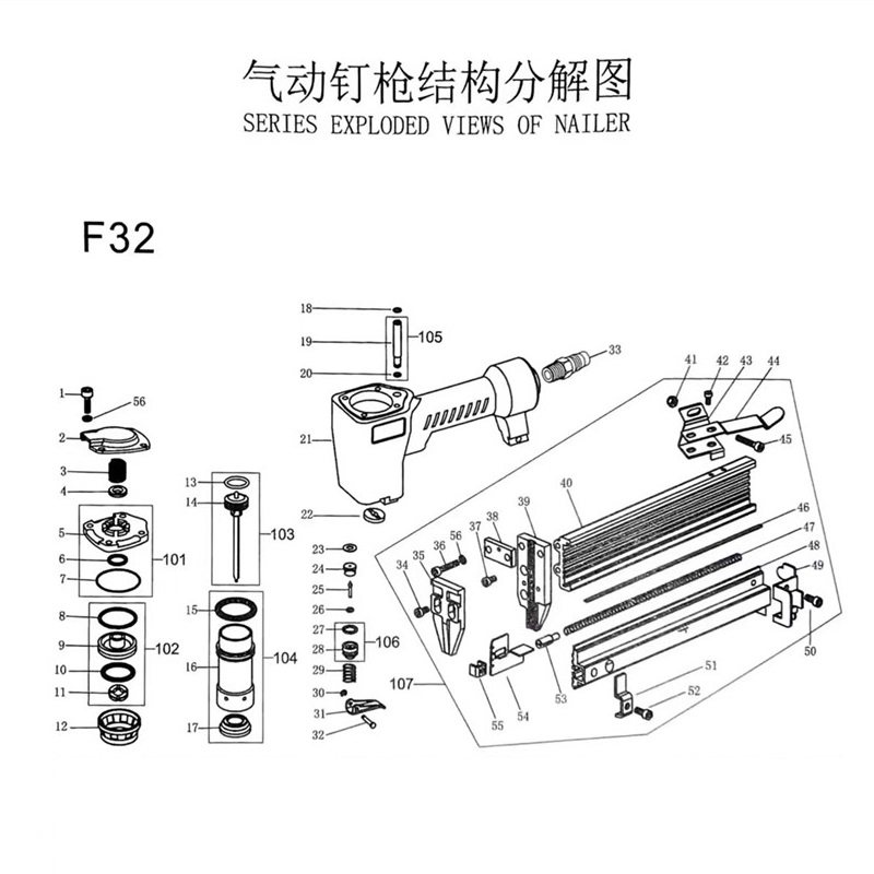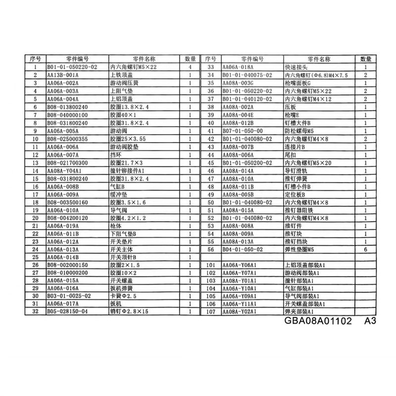 103-Firing Pin section A1107 # - Pop-up Clip fitting A1 (Classic section) 107 # - Pop-up Clip fitted with A6 (tip-billed) 4-upper-resistance air cushion 22-lower-resistance air cushion A22
