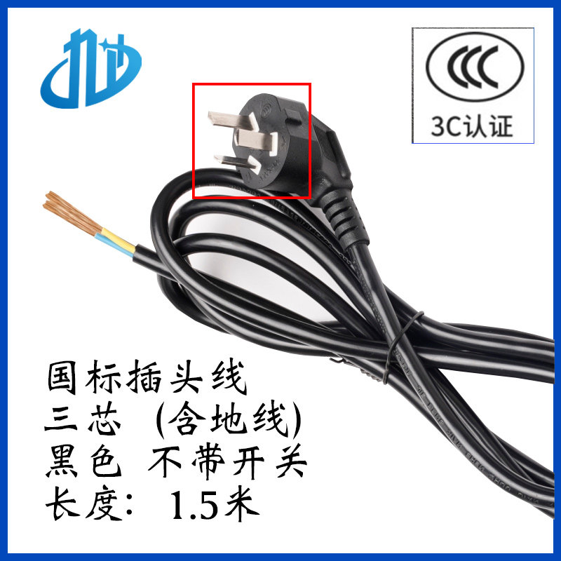 Pure copper core national standard black white transparent High power two-core three-core 6A 10A with switch power cord plug