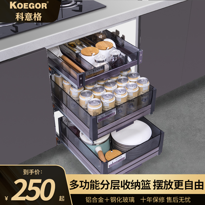 Kyig flavored pull kitchen cabinet split double-deck drawer separation toolkitchen cabinet shelf receiver