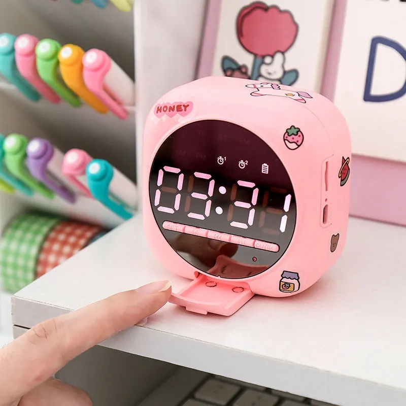 Bluetooth speaker wireless sound screen Red alarm clock FM radio Low tone gun Mini small pillow horn 931f9c