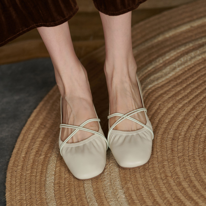 Genuine Leather Lefu Shoes Nurse Shoes Women Soft Bottom Retro Grandma Shoes 100 Hitch Comfort Cross With Shallow Mouth Single Shoe Woman Flat Bottom
