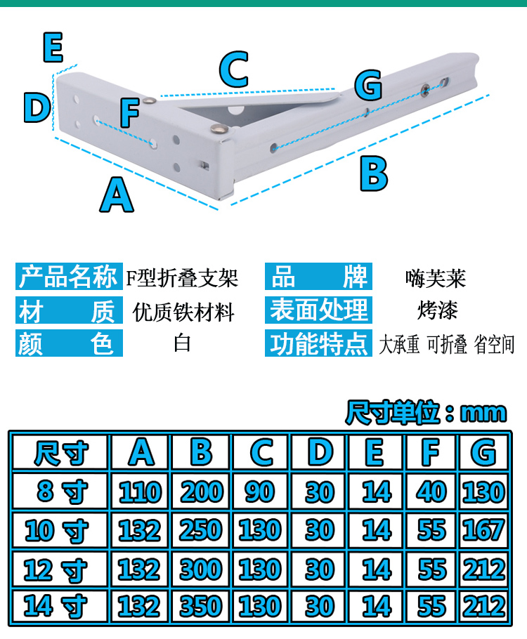 Iron paint f-type 8 inch brackets 2 iron paint f-type 10-inch brackets 2 iron paint f-type 12-inch brackets 2 iron paint f-type 14-inch brackets 2 stainless steel f-type 8-inch brackets 2 stainless steel