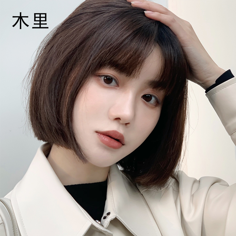 Wood Ri Real Hair Wig Short Hair Girl Bobo Head Summer Full Headgear Wave Head Cute Nature Minus Age Air LiveSea