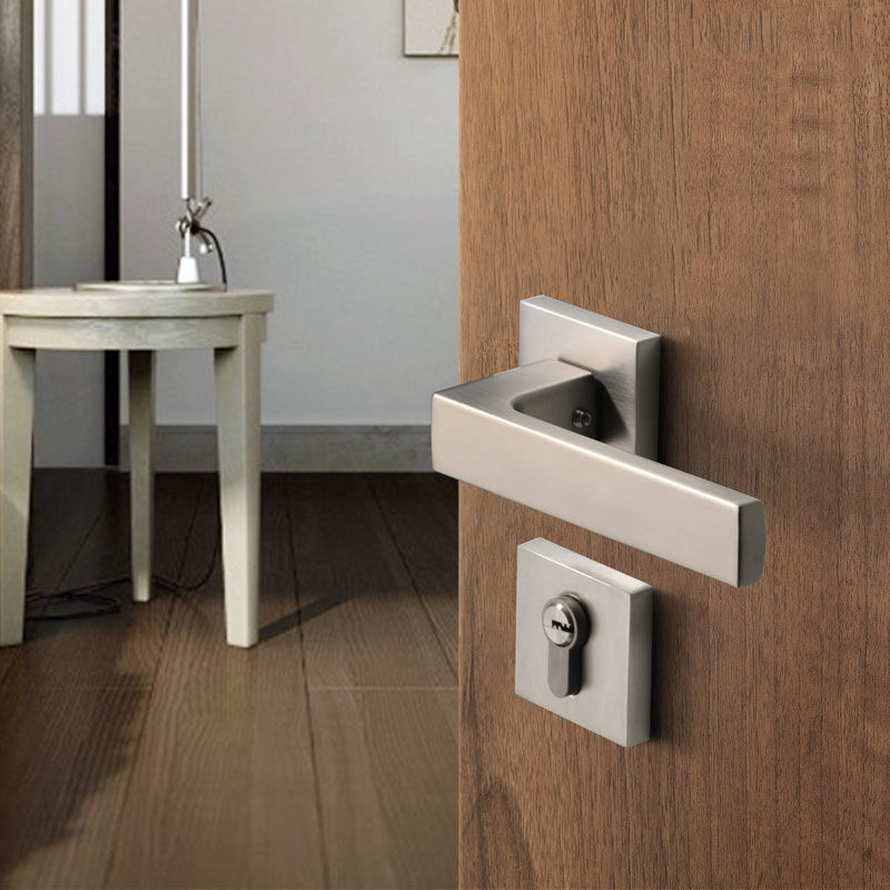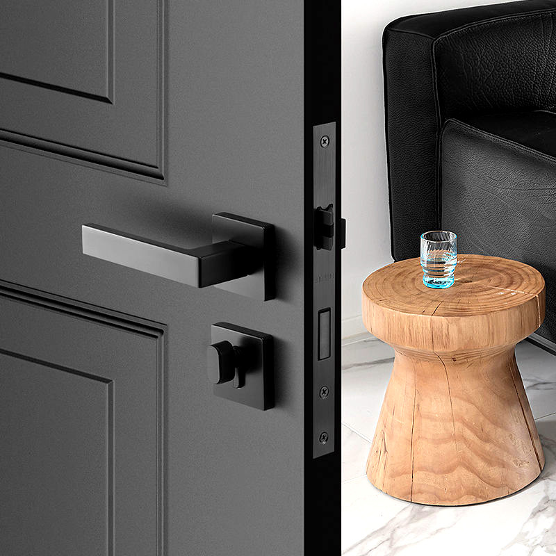Bedroom door lock household wooden door universal indoor room silent magnetic simple silver black two-piece lock lock